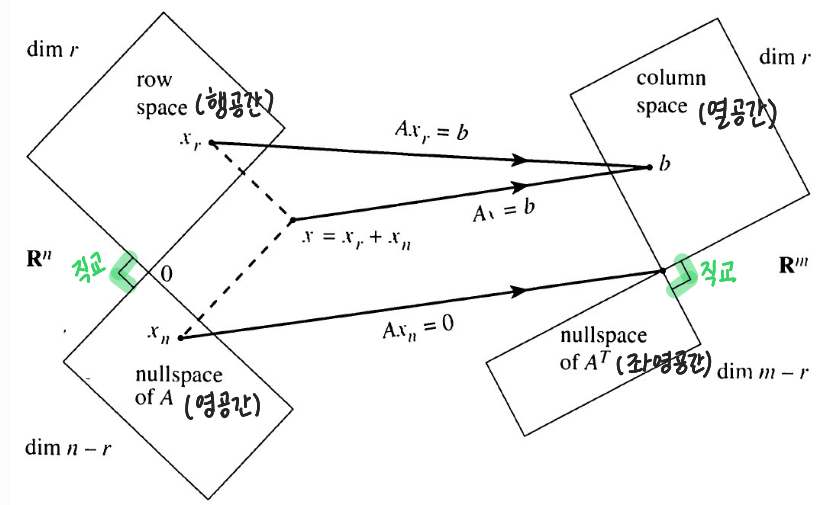 더보기1. 행렬의 곱셈 4가지 관점2. 행렬은 선형변환(함수)이다.3. 벡터공간(vector space)4. 부분공간(subspace)5. 행공간(row space)과 열공간(column space)6. 영공간(null space)7. 부분 공간(sub space)들간의 관계1. 행렬의 곱셈 4가지 관점 1) 내적(Inner/Dot product)으로 바라보기Q.Transpose(T)를 사용한 이유A. 보통 vector라고 하면, column vector(열) 이기에    해당 row vector(행)를 나타내기 위해 T를 붙인다.위의 내적값 구하는 공식을 참고하여,row vector(행) 와 column vector(열)을 곱한 결과값을 보면, 내적값임으로 알 수 있다. 2) rank-1 matrix의..