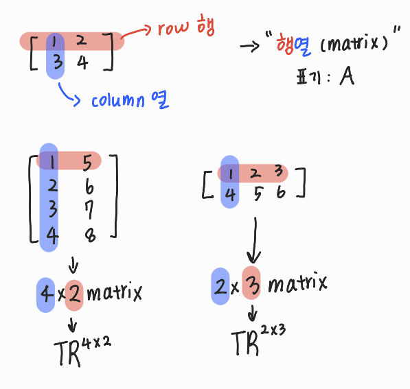 더보기1. 행렬(Matrix)의 필요성 및 정의2. 벡터(Vector)의 정의3. 행렬의 기본 연산: 덧셈과 곱셈4. 행렬의 특성: 교환법칙과 결합법칙5. 항등행렬(Identity Matrix)과 역행렬(Inverse Matrix)6. 전치행렬(Transpose Matrix)1. 행렬의 필요성-다량의 데이터에 대한 계산을 편리하게 하기 위함-현실 세계의 많은 문제는 행렬을 이용해 해결할 수 있다. 행렬(Matrix)의 정의 : Rectangular array of numbers 직사각형 모양의 숫자의 배열= 숫자들을 모아서 한번에 표현행렬의 요소(Matrix Elements = entries of matrix) 파이썬 코드 예시 (Numpy 활용)더보기import numpy as np # 행렬 생성 A ..